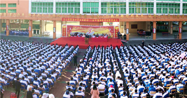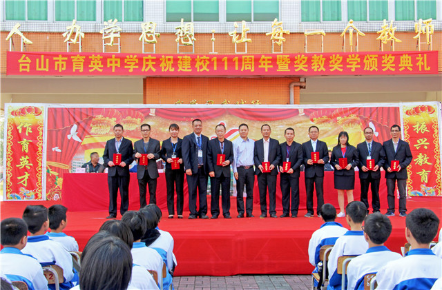 11月23日,育英中学举行建校111周年校庆活动,同时举行奖教奖学颁奖仪式。原市政协副主席、育英中学董事会董事长谭国渠,教育局党组成员邝旭东,香港谭氏宗亲代表,海外华侨代表,退休教师代表,2018年考入台山一中的毕业生代表以及全校师生等欢聚一堂。