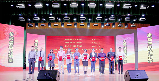 团市委书记谢永斌为全民禁毒工作优秀志愿者代表颁奖▲
