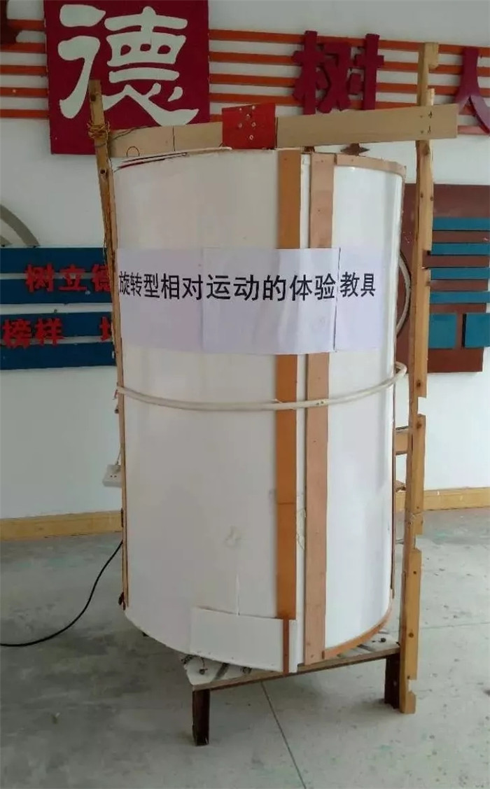 旋转型相对运动体验器的结构和平动型相对运动体验器的大同小异,只不过旋转型的参照物是可以正转和反转的,车厢也是可以正向旋转和反向旋转的。旋转速度控制在每分钟二十至三十转之间。