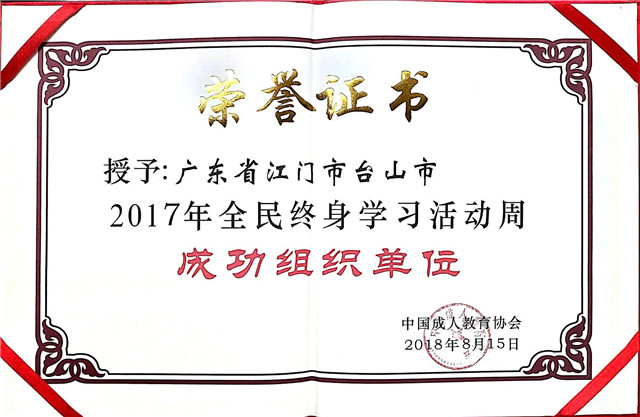 近年来,我市全力开展“广东省社区教育实验区”创建工作。市委、市政府高度重视、不断加大投入,各部门、各镇(街)强化联动,共同开展各类社区教育活动,进一步完善了教育网络,创建了各类学习型组织,推进了社区教育规范化建设,全面提升了社区教育发展水平,赢得了社会各界广泛好评,并于今年10月份顺利通过省级社区教育实验区调研检查组的督导验收,成功摘得了“广东省社区教育实验区”荣誉称号。