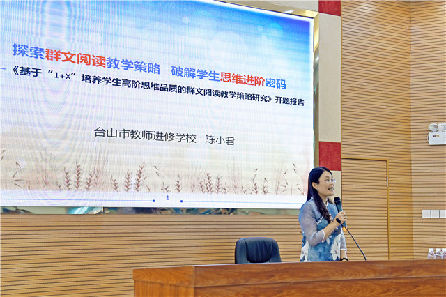 课题主持人、教师进修学校教师陈小君陈述开题报告,从课题研究的目的和意义、同类研究现状综述、课题的核心概念、研究目标和内容、研究思路及方法、研究计划及步骤、研究的预期成果、课题组成员及分工等多方面进行汇报。