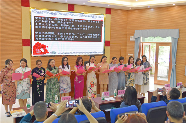 在儒雅的音乐背景中,课题组吟唱《论语》,开题活动拉开序幕。