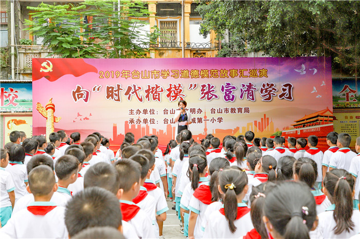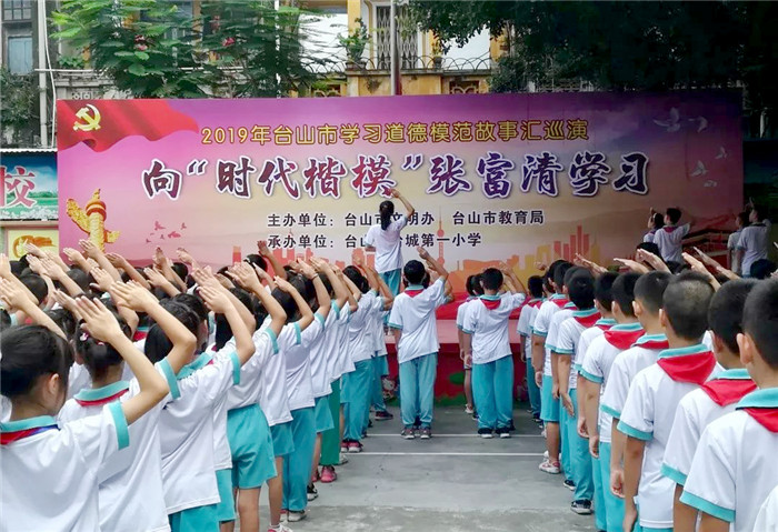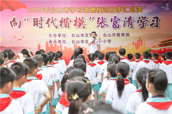 7月1日,市文明办、教育局在台城一小举行2019年台山市学习道德模范故事汇巡演——向“时代楷模”张富清学习活动,主办单位负责领导以及该校全体师生等参加。
