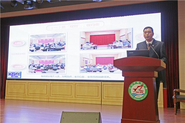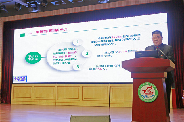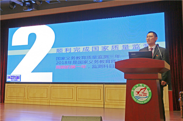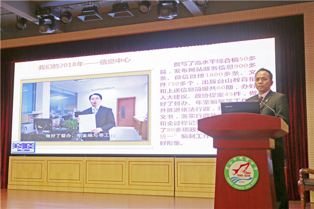 1月16日下午,市教育局在鹏权中学举行2018年机关“文明股室”评选活动,13位股室负责人一一登台从年度任务完成情况、团队精神、创新能力以及廉政建设四个方面展示了各自股室的工作亮点。市教育局全体干部,全市公民办中小学校长、幼儿园园长及有关单位负责人参加活动。