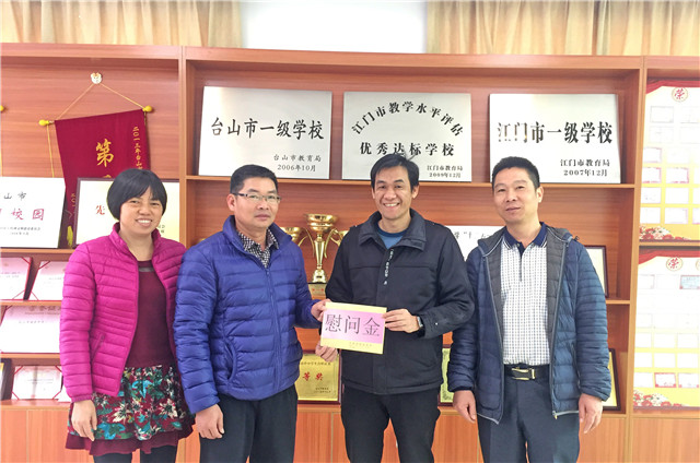 新春佳节到来之际,为充分体现党和政府对道德模范的关心关爱,进一步在全市形成尊崇、关怀、学习道德模范的良好风尚,市教育局对获“江门好人”敬业奉献提名奖的台城一小校长黄泳虹以及“台山好人”海宴中学教师龚艺华、联合职校学生林月轩进行了慰问。