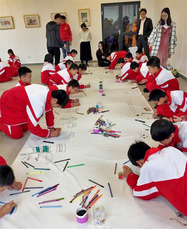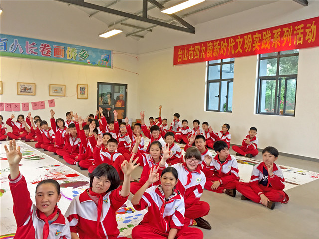 近日,四九镇中心小学近百名师生参加四九书院举办的新时代文明实践系列活动之百人长卷画侨乡。在四九福临巧厨娘文化营会客厅,同学们认真听了美术教师梁镇兴的指导后,一起在展开的长卷上画碉楼,画美食等,一边画一边感受侨乡文化,学习华侨和港澳同胞爱国爱乡的精神。
