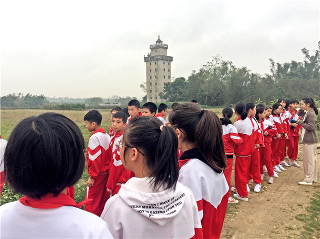 活动中,同学们还参观了江门地区最高的碉楼——福临碉楼和台山地区有名的塘田水库,听四九书院院长介绍碉楼和塘田水库的历史。