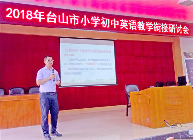 为促进小学、初中英语教师对我市两个学段的英语教学情况互相了解,以更好地开展英语教学工作,10月29日,市教育局小学英语教研员雷炳权和中学英语教研员陈叶青联手在育英中学举行小学初中英语教学衔接研讨会,教研室主任刘一柱、副主任梁海彤到场指导,200多位小学、初中英语教师参加学习。