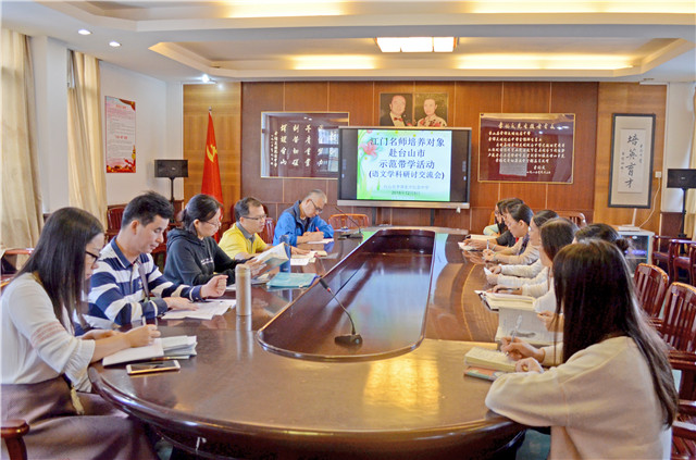 示范带学团在台山侨中、台师高中、更开中学、新宁中学、广大台山附属中学、大江镇中心小学、斗山镇中心小学、李星衢纪念学校、马兰芳幼儿园共开展讲座10场,名师示范课28节,我市教师上研讨课28节,然后大家一起评课论课,进行学术交流。