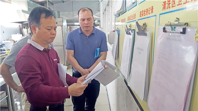 近日,市教育局党组成员容惠汉带队到我市学校开展食品安全飞行检查。检查内容包括食品加工安全把关情况,学校食堂管理人员及食品从业人员健康体检和培训情况,食堂基本设施建设,餐饮具消毒管理、食品留样、蔬菜农药残留检测、食品及其原材料采购索证、索票、验收等各项制度,学校领导陪餐落实情况,学生一周菜谱公示以及小卖部“辣条”等“五毛食品”的检查等。从检查结果看,我市校园食品安全整体情况较好,食堂管理水平和工作人员食品安全意识有了明显提高。