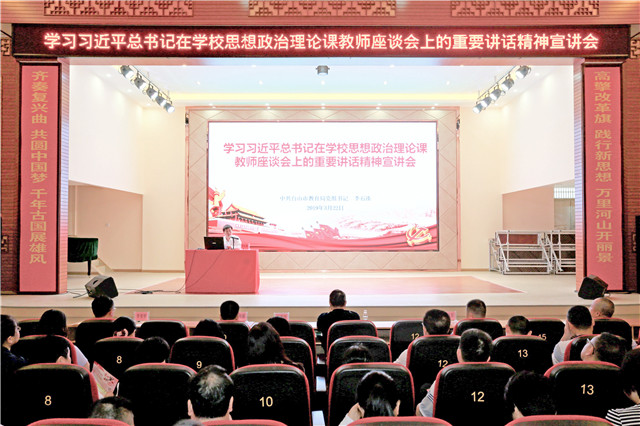 当天下午,市教育局在培英职校联合校区组织召开学习习近平总书记在学校思想政治理论课教师座谈会上的重要讲话精神研讨会,全市中小学、幼儿园及有关单位分管德育工作的副校长参加研讨。