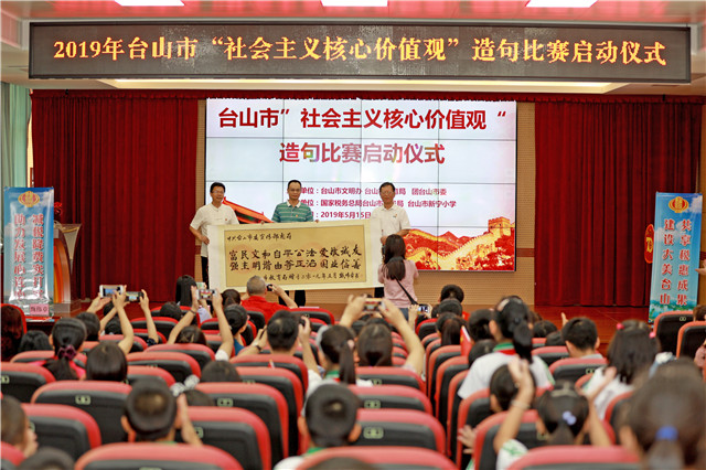 为全面推动习近平新时代中国特色社会主义思想在台山开花结果,培育和践行社会主义核心价值观,推进“台山模式”新时代文明实践建设,市文明办、教育局、团市委联合举办社会主义核心价值观造句比赛。5月15日,比赛在新宁小学开锣。