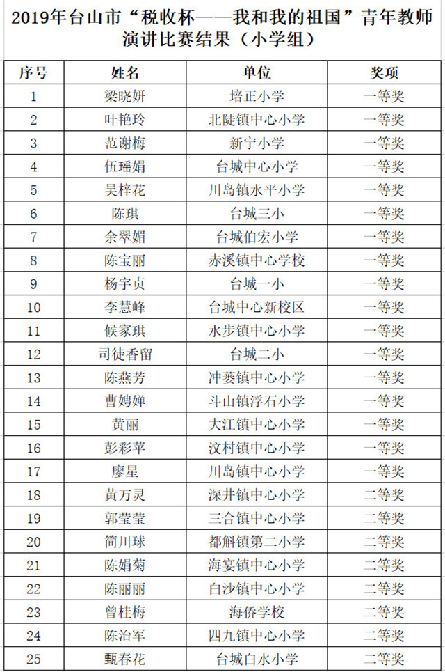 现场还进行“税收杯——我和我的祖国”青年教师(小学组)演讲比赛决赛,25名青年教师纷纷上台向祖国表白心迹。