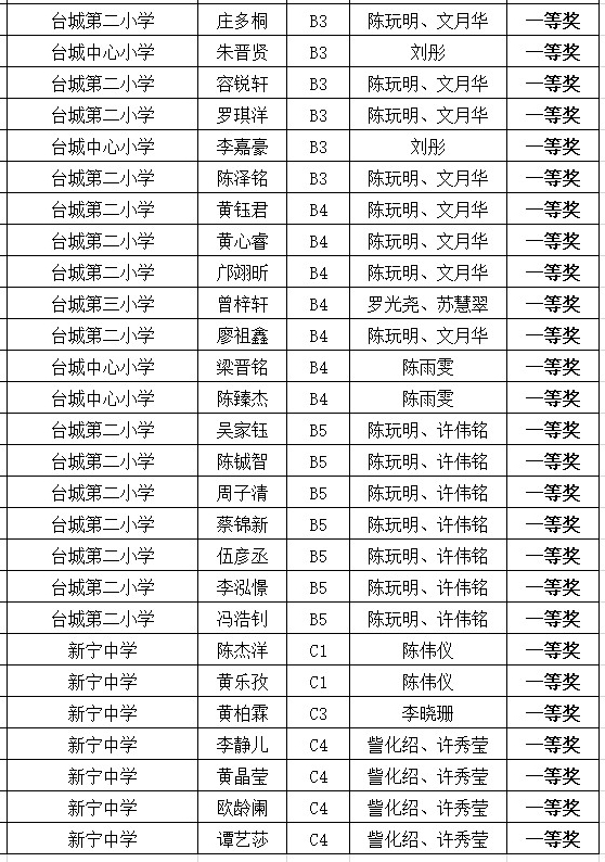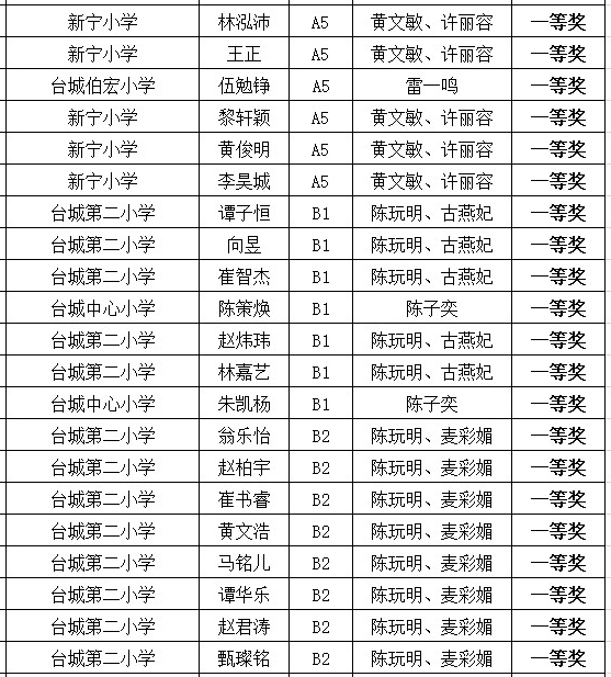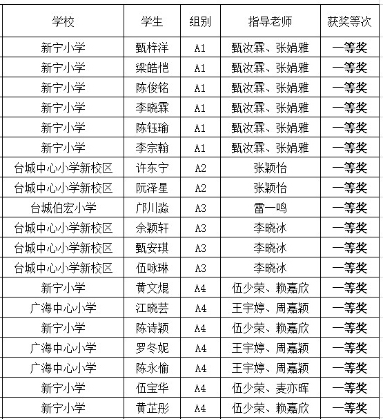 2019年台山市“小小科学家”少年儿童科学教育体验活动比赛获奖名单