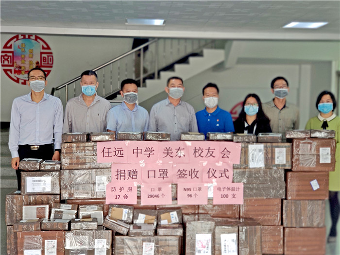 此外,杨勇文敏锐意识到国内防控物资稀缺,马上争取镇政府、本地校友的帮助和支持,第一时间主动组织联络各地校友,积极发动他们捐赠防控物资,筹集了近40000元美金,用于购买40000个口罩、160个红外线测温仪、一次性防护服170件、手套2000个。这些防控物资,除了用于本校的防控疫情外,还支持教育局、斗山镇人民政府和个别兄弟学校,并亲自送达转交,确保每批物资及时用到防控一线。