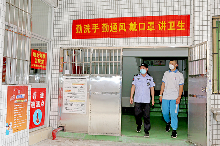 6、另一名校医则到课室对班内学生逐一进行体温检测,确认均无异常后,由上课老师带领学生由疏散专用通道离开,到备用课室上课;