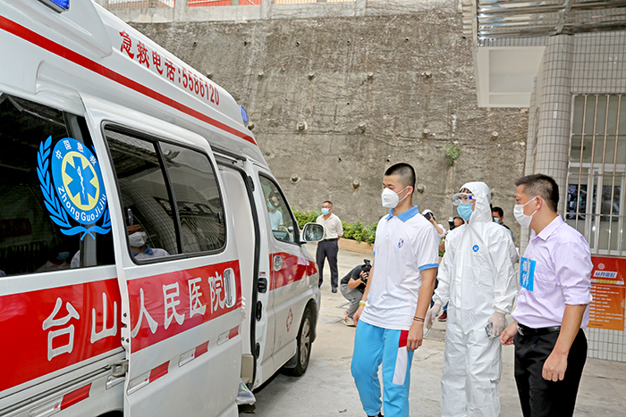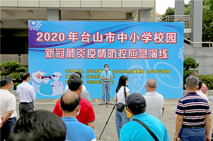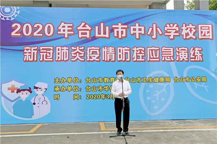 3月23日,我市“首场”校园开学疫情防控应急演练在台山侨中举行,演练分五个情景,对“交通疏导”“入校检查”“课堂教学”“食堂就餐”“宿舍就寝”等突发情况进行现场模拟演练。市教育局、卫健局、公安局有关领导,市直属学校负责人等参加了活动。