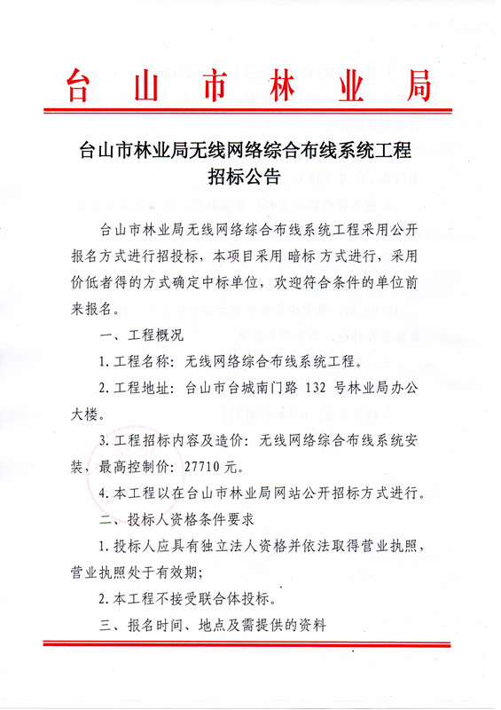 【公告】台山市林业局无线网络综合布线系统工程招标公告