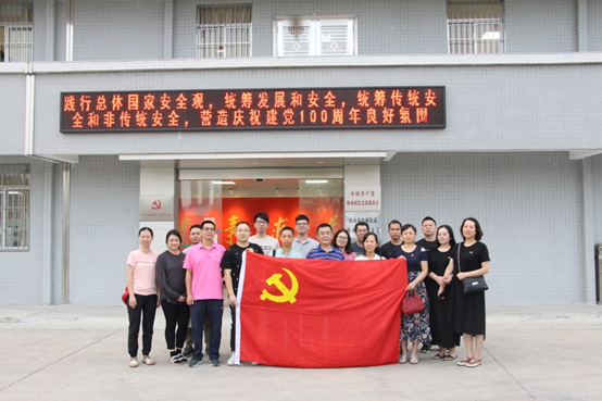 全体党员参观了位于筋坑管区南安村的光大学校旧址,在筋坑村委会书记带领下全体党员深入了解了光大学校的建校史,在参观过程中党员们了解到爱国华侨叶崇濂曾请孙中山亲笔题写“光大”二字,光大学校因孙中山的题字声名鹊起,抗日战争时期并为台山联合中学,培养了许多地下党员,曾作为粤中军事会议的据点,珠江纵队、滨海纵队、三罗总队许多干部都从光大学校走出去。全体党员还学习了革命理论先驱“红色教授”——何干之的伟大事迹,何干之出生于台山筋坑塘口村,是中国共产党著名理论家、历史学家、教育家和党史学家,是新中国高校中共党史学科的奠基人。此外还了解了从民国时期到新中国台山女子教育的历史背景,学习了旧时期台山女子为女权而艰苦卓绝、气壮山河的奋斗历史。