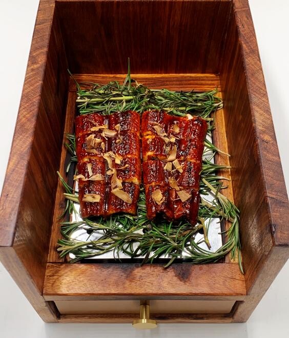 活动邀请了“世界厨王”、台山市侨乡特色菜研发中心首席大师伍海峰先生现场分享其创业故事,并以国家地理标志保护产品--台山鳗鱼为主题,研发出蜜汁轻熏脆鳗柳、雪里红烧鳗鱼碌、青柠檬汁蒸鳗鱼、百香果酥脆鳗鱼柳等4道特色菜式,交流美食烹饪技艺。