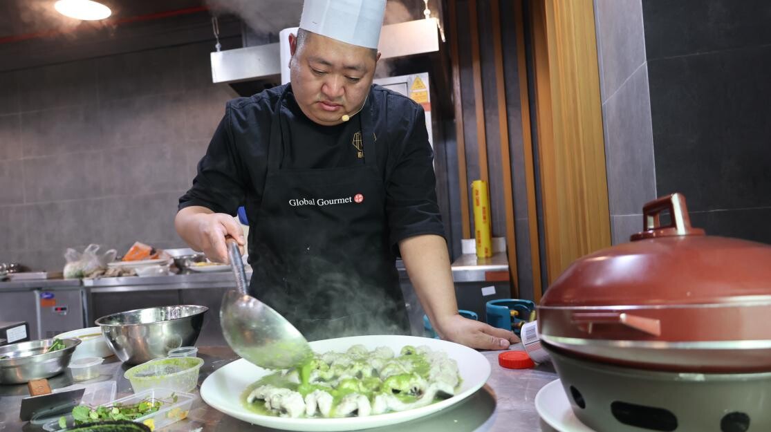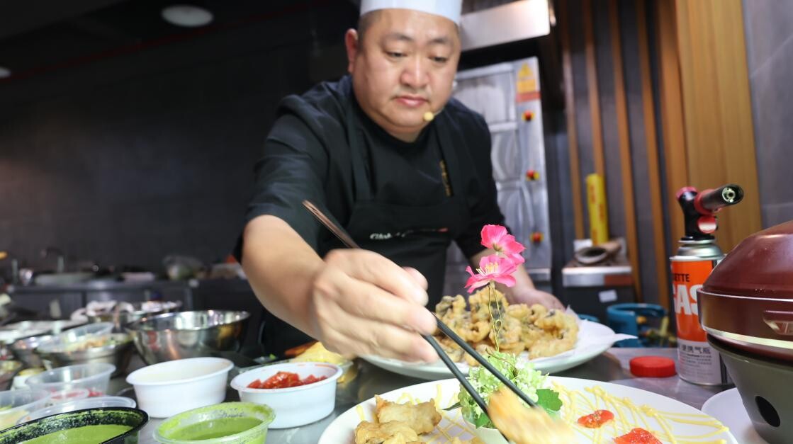 活动中,伍海峰大师使用优质的台山鳗鱼结合本地其他食材做出美味菜品,精湛的技艺和丰富的烹饪方式,引起现场观众的阵阵掌声。