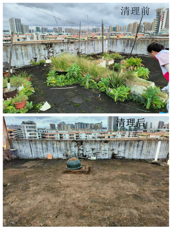 连日来,市人社局全体党员干部带上清洁工具,深入社区背街小巷、房前屋后、天台的卫生死角,重点清理各类积存垃圾、废弃容器、塑料薄膜等易积水点位,从源头上铲除蚊虫孳生土壤。针对巡查发现的公共区域小型积水,及时进行清理;对于难以立即清除的大型积水或卫生难题,则详细记录并协调社区、物业等部门限时整改。