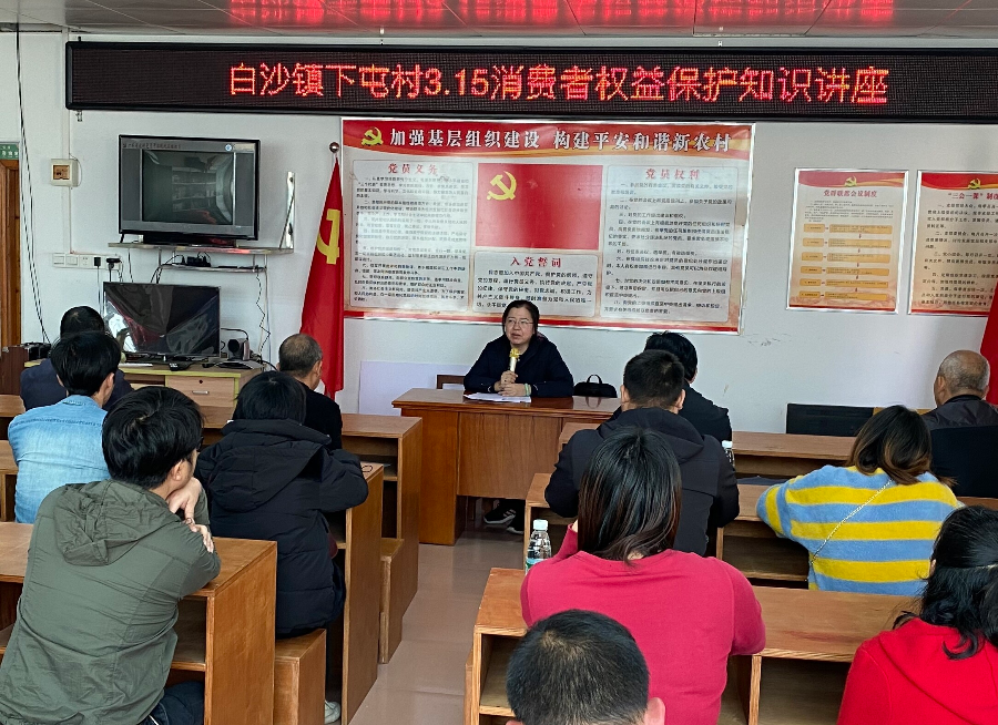 白沙司法所在白沙体育馆开展以“消费者权益保护”为主题的法治宣传活动,通过设置咨询台、分发宣传材料等方式,向辖区群众普及消费维权知识;并在村委会举行消费者权益知识讲座活动,邀请驻村法律顾问为村民宣传普及《消费者权益保护法》等法律法规,详细剖析商品交易中容易存在的消费陷阱、欺诈行为等乱象,向村民讲解如何使用法律武器维护自己合法权益。