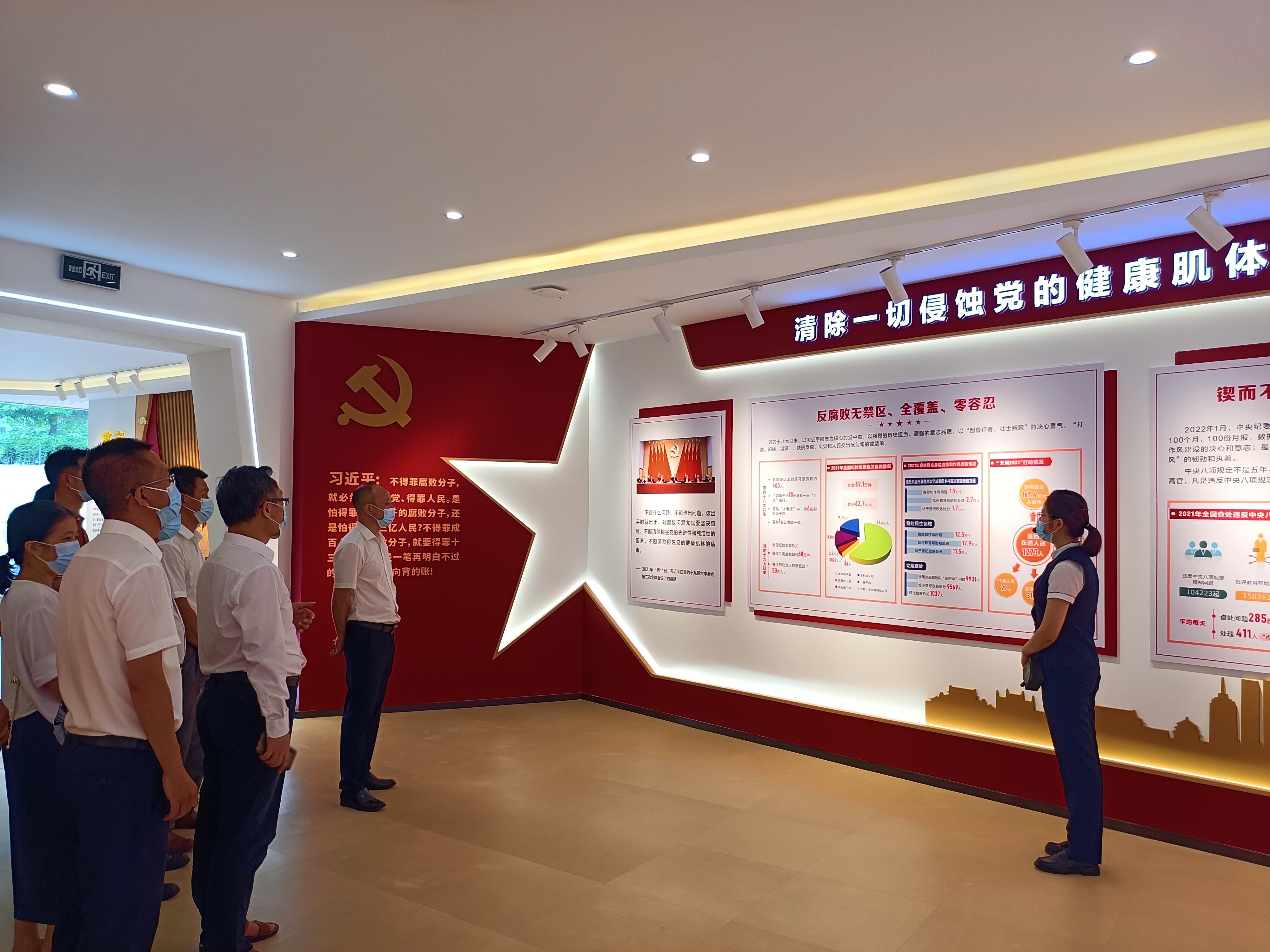为深入贯彻落实全面从严治党要求,切实增强党员干部廉洁自律意识,筑牢思想防线,提高拒腐防变能力,8月17日上午,我局开展8月份主题党日活动,由党组书记、局长黄卫松带领全体党员干部前往台山市廉政教育基地参观学习,扎实开展纪律教育活动。