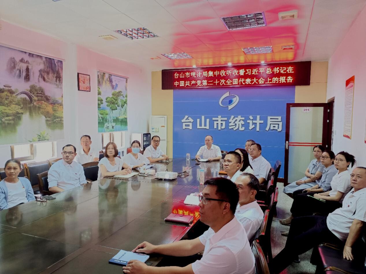 通过观看党的二十大开幕会盛况,全局党员干部深受鼓舞,倍感振奋。大家纷纷表示,要认真学习、深刻领会报告精神,把学习宣传贯彻党的二十大精神作为当前和今后工作中的首要政治任务,用党的最新理论成果武装头脑、指导实践、推动工作。真正学出坚定信仰、学出绝对忠诚、学出责任担当、学出过硬作风、学出能力水平,特别要把学习报告精神与做好统计工作结合起来,紧盯统计数据质量、加强经济运行监测、做优统计咨询服务,为推动台山经济社会高质量发展贡献统计力量。