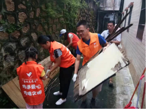 为助力全国文明城市创建工作,深入推进“双报到双服务”活动,8月17日上午,由市统计局党支部组织全体党员联合南塘社区共建单位共30多名志愿者,冒着风雨到岑边网格开展创文入户宣传和清洁环境活动。