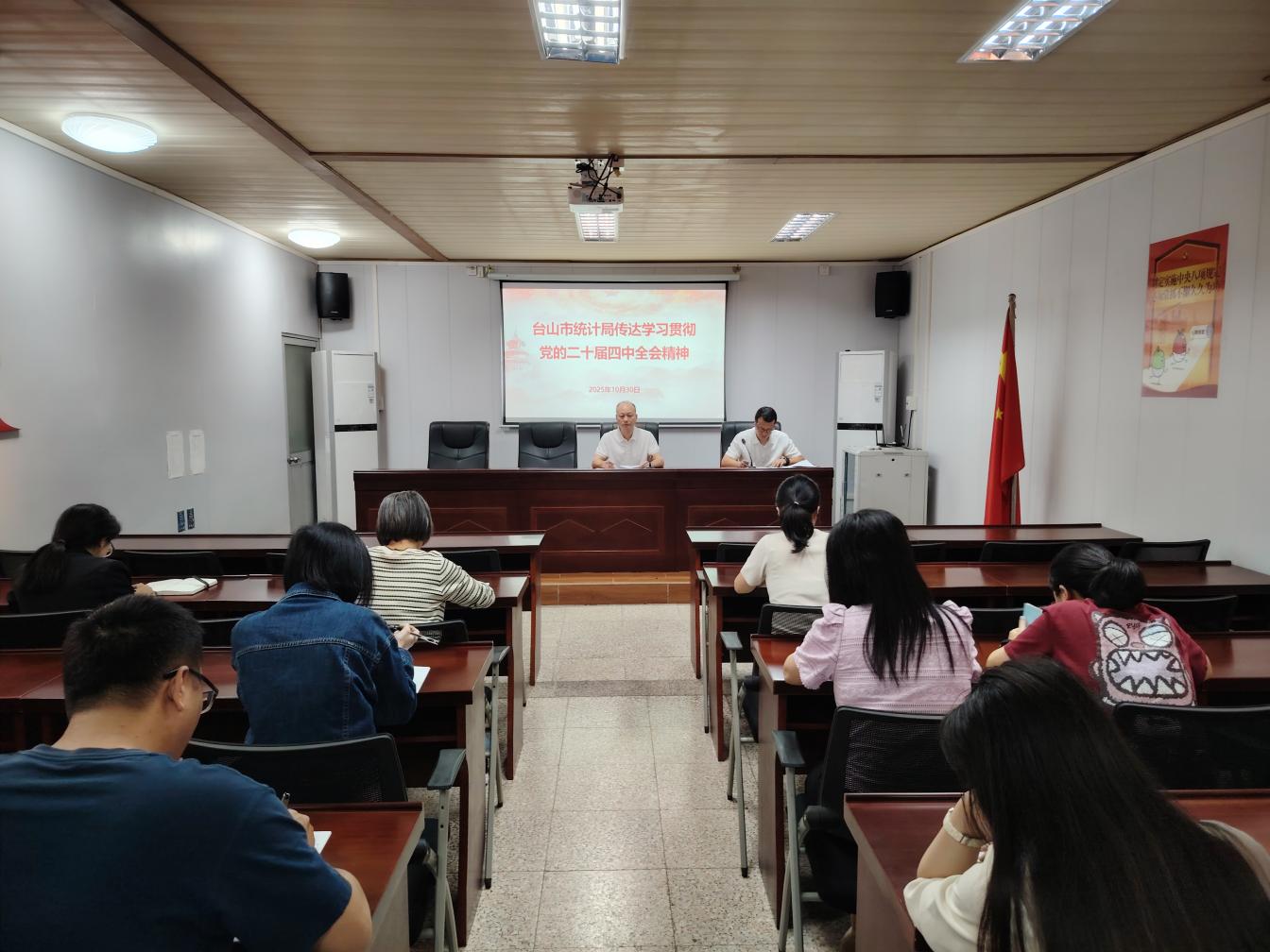 10月30日,台山市统计局召开党组(扩大)会议,专题传达学习贯彻党的二十届四中全会精神,以及省、江门、台山有关会议精神,研究部署贯彻落实工作,局党组书记、局长黄卫松同志主持会议,局班子成员、全体党员干部参加会议。