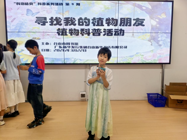 春风作伴,绿意盎然,一场与植物的美好邂逅在台山新华书店(润华店)温馨上演!2026年3月22日,由台山市图书馆与广东新华发行集团台山新华书店有限公司联合主办的“科海拾贝”科普系列活动第9期——“寻找我的植物朋友”圆满举办。70多位大小朋友齐聚一堂,解锁植物王国的奇妙秘密,亲手领养专属绿植,在春日里种下美好与期待,度过了一段充满自然趣味的欢乐时光。