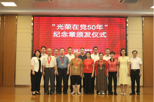 近日,市卫生健康局举行“光荣在党50年”纪念章颁发仪式,向截至今年7月1日党龄达到50年的老党员颁发纪念章。市卫生健康局党组书记、局长魏清莲出席活动,并为我局机关党委属下的6名老党员颁发纪念章。