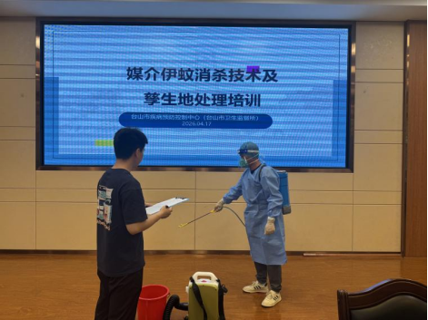 在理论讲解后,市疾控中心围绕个人防护穿戴、药物精准配比以及超低容量喷雾器等器械的使用,进行了详细的要点讲解和实际的操作演示。