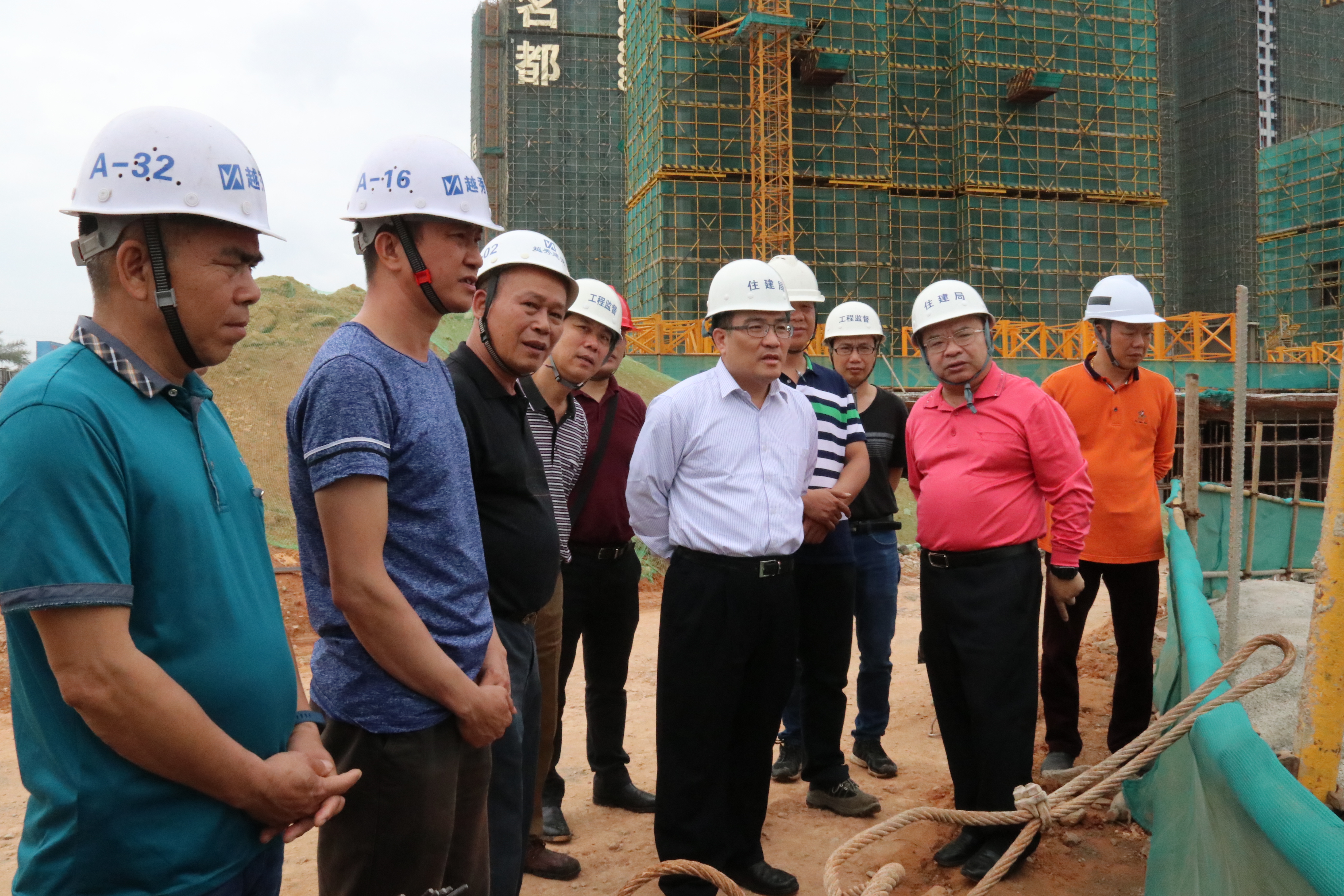 3月28日上午,市政府党组成员、市府办主任容建强在市住建局局长刘文的陪同下,现场督导了恒大名都项目工地的建筑施工安全生产工作。