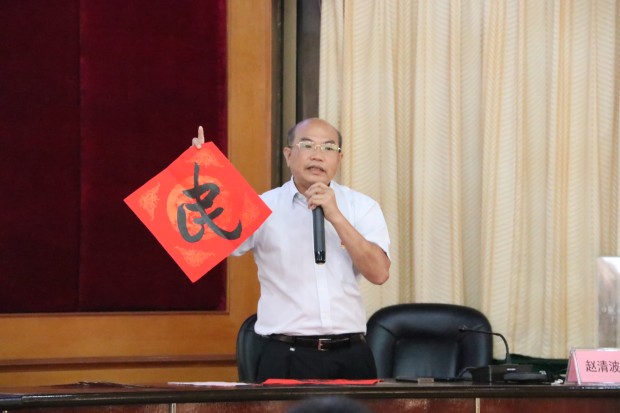 ▲市文联党组书记、主席赵清波为党员干部作专题宣讲