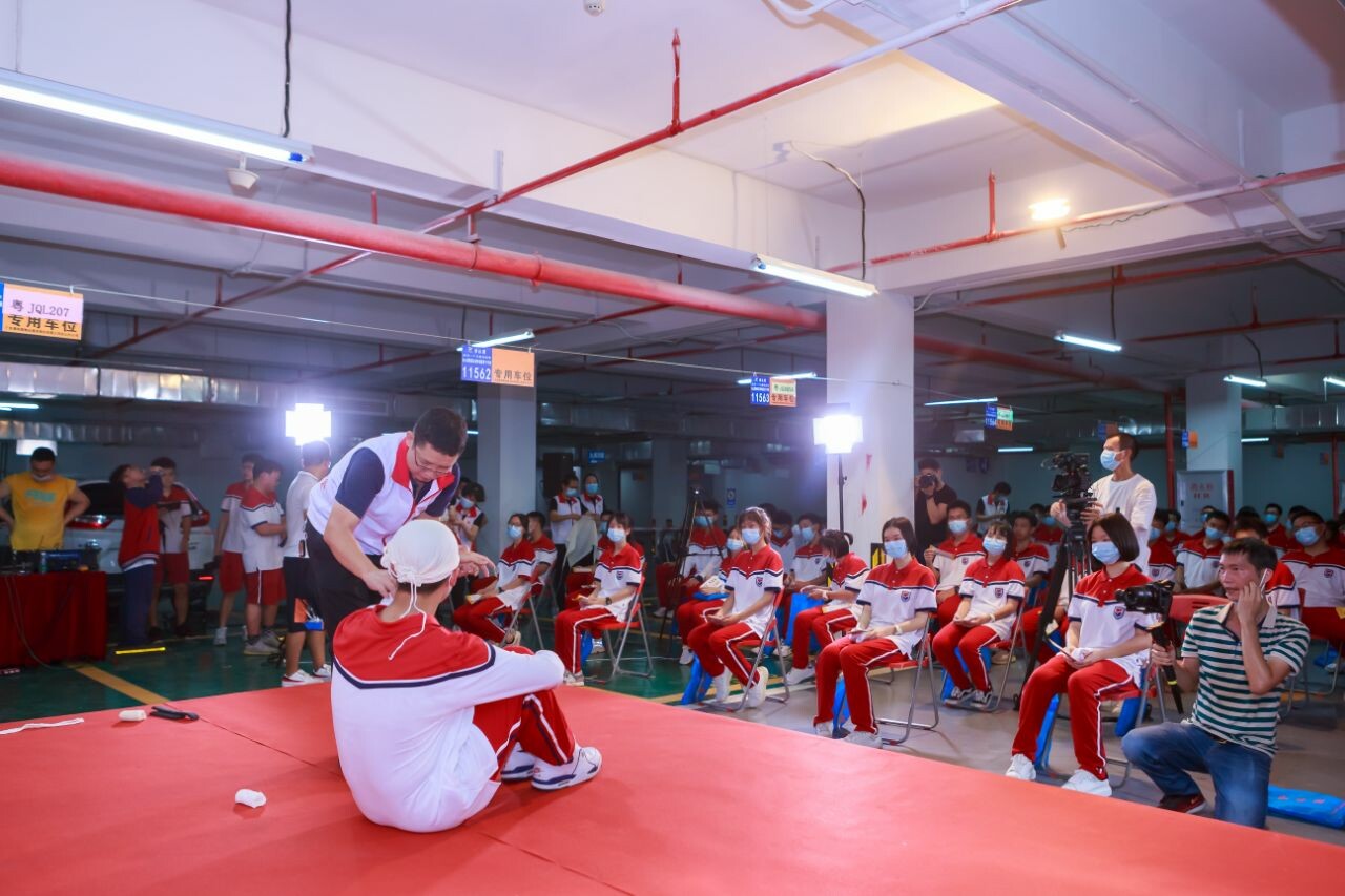 演练过程中,碧桂园学校的参演师生在听到模拟的防空警报预警信号后按要求的程序和路线有序撤离至台山碧桂园幸福里人防工程内,市红十字会的讲师现场给学生讲解了应急损伤包扎及心肺复苏等科普知识。最后,参演人员听到模拟的防空警报解除信号后按要求有序撤离出人防工程后回到学校。整个演练过程参演人员表现出了良好的纪律意识和集体观念,做到了一切行动听指挥,活动按原计划圆满完成。