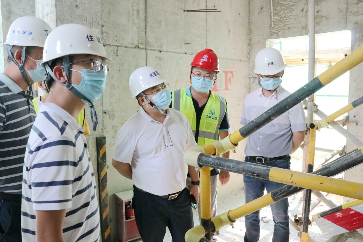 刘文局长一行深入工地作业区,实地检查了建筑工地的安全生产、疫情防控、扬尘防治等落实情况,认真听取建设、施工、监理单位的现场负责人关于工程进展、人员管理以及农民工工资支付等情况汇报,并就进一步加强“双节”期间安全防范工作提出了具体工作要求。