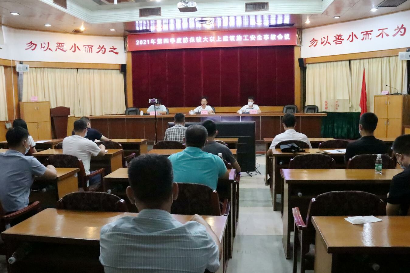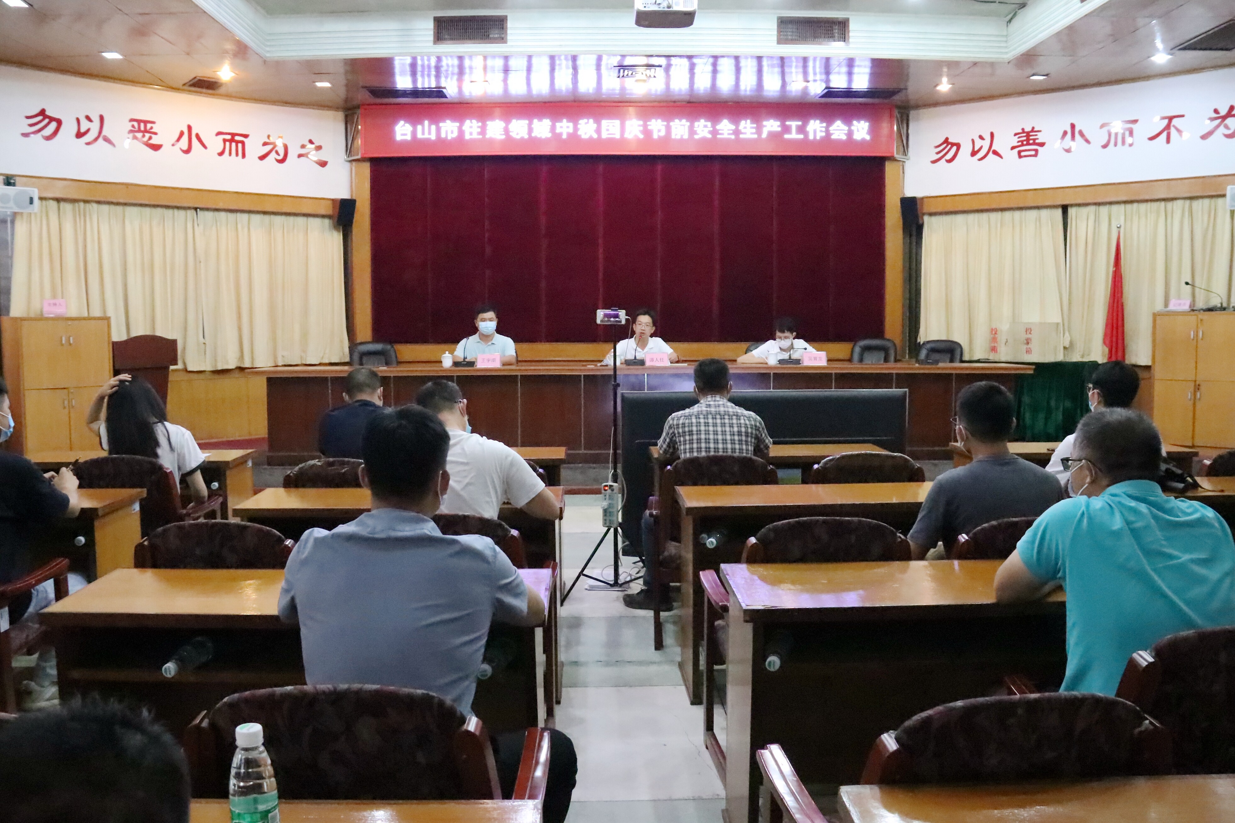 9月17日下午,市住建局召开台山市住建领域中秋国庆节前安全生产工作会议暨2021年第四季度防范较大以上建筑施工安全事故会议。会议通过现场会议及视频直播相结合的方式召开,主会场设在市住建局308会议室,分会场设在住建局305和市质安站会议室。会议由市住建局党组成员、副局长谭人任主持,建筑工程监管股股长吴育龙,质安站站长王宇南,以及质安站、检测站和建管中心副职以上领导和我市各房地产开发商、施工单位、监理单位的项目负责人、项目总监及物业管理公司负责人等共约120人参加会议。