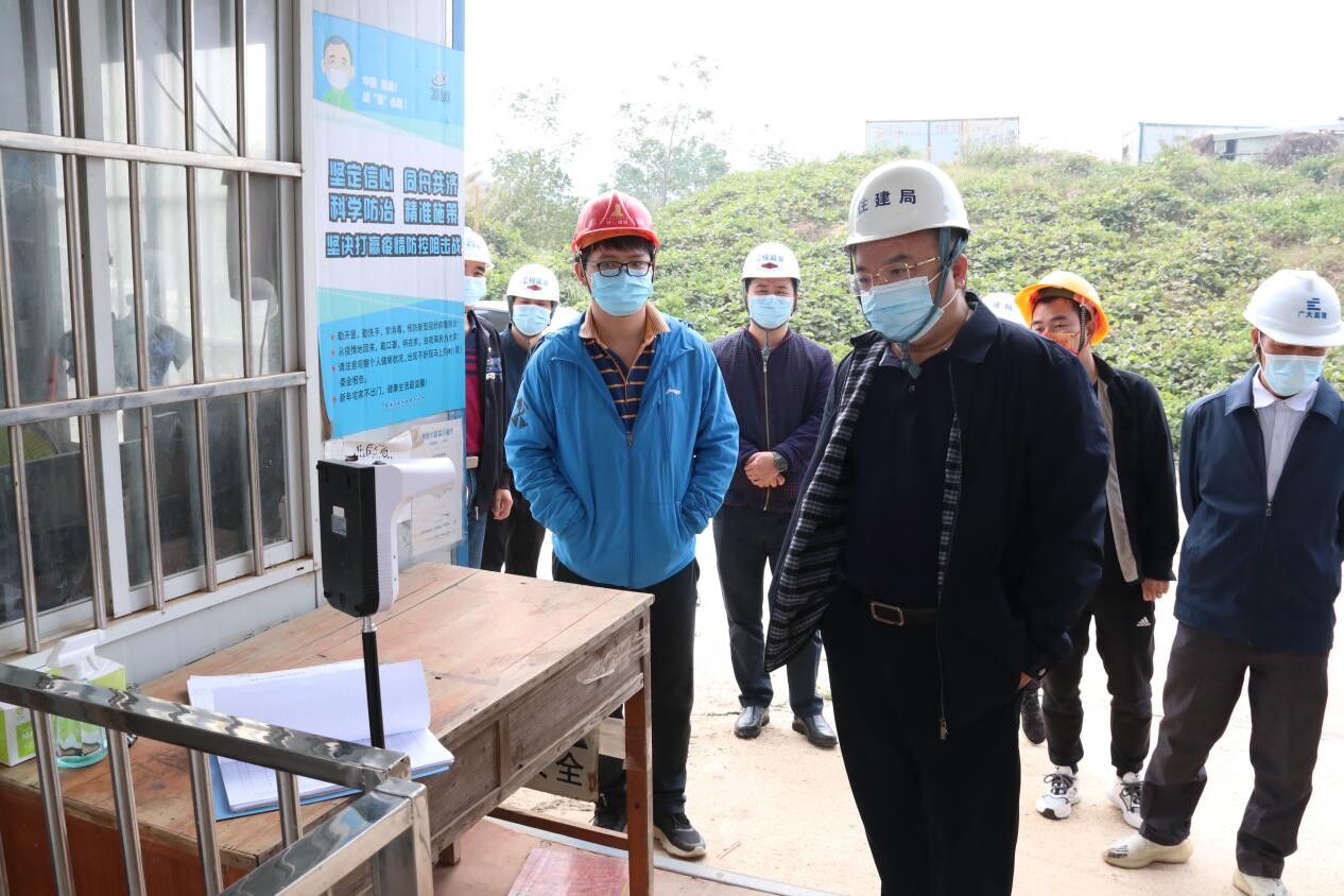 在建筑工地,刘文局长一行走进作业区,逐项检查疫情防控工作落实情况,并对安全生产、工人工资支付等工作开展督导检查。刘文局长强调,当前疫情防控形势严峻复杂,加上春节等重要节点也相继临近,人员来往流动比较密切,防控工作已处于关键时刻,全体人员要认清形势及早行动,谨记疫情防控就是“国之大者”,决不能松懈麻痹、决不能心存侥幸,坚持未雨绸缪抓早抓快,提前制定工作预案和配备齐足口罩、消毒用品等防疫物资,严格落实工人实名制管理,加强人员流动摸排管控,分类落实健康管理措施,对来自重点地区从业人员做好健康监测和登记造册,并严管人员出入,非工地参建人员和车辆严格控制进入工地,参建人员进入工地做好测温、扫码、信息登记等工作,确保闭环闭得住,防止疫情输入扩散风险。