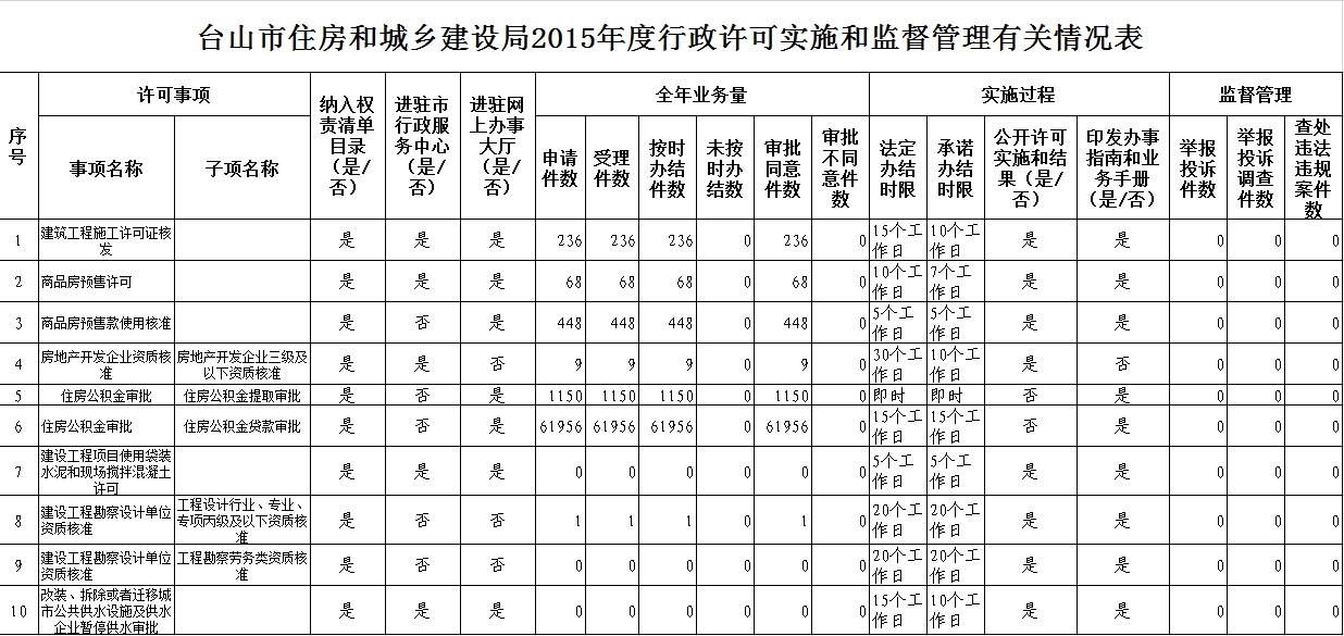 附件:台山市住房和城乡建设局2015年度行政许可实施和监督管理情况报告