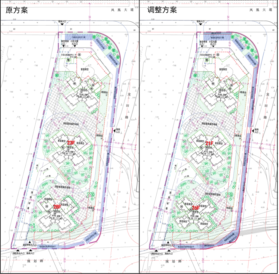 调整内容:1栋住宅户型由T4调整为T6布局,层数由28层调整为26层;2栋住宅户型微调,层数由23层调整为21层;项目户数增加30户,增加相应配建车位。