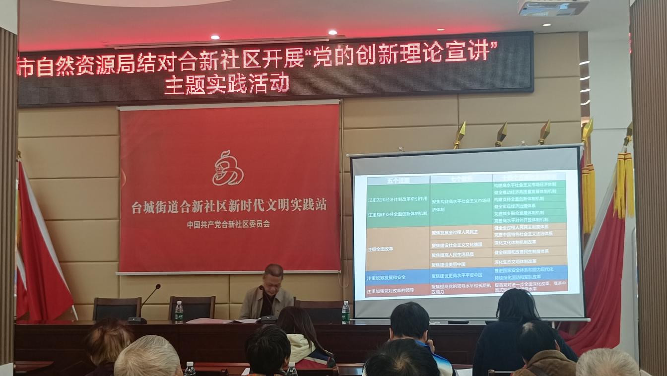 为充分发挥退休党员干部优势,推动党的创新理论“深入寻常百姓家”,12月20日上午,市自然资源局深入合新社区开展“党的创新理论宣讲”主题实践活动,邀请市“银龄宣讲队”成员、我局退休党员黄明辉以“‘进一步全面深化改革 为中国式现代化注入新动能’——学习贯彻党的二十届三中全会精神”进行宣讲。