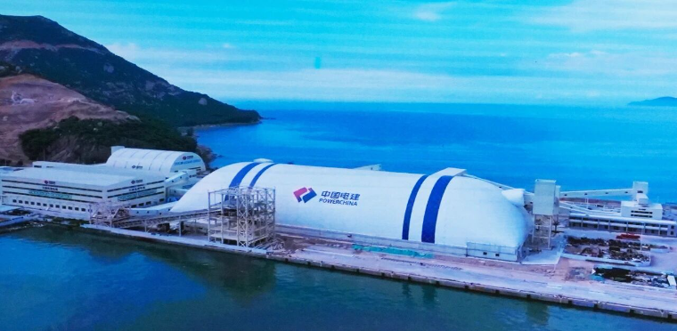 赤溪镇广海湾中电建绿色建材项目受超强台风吹袭。(上图:项目原貌 下图:灾后情况)