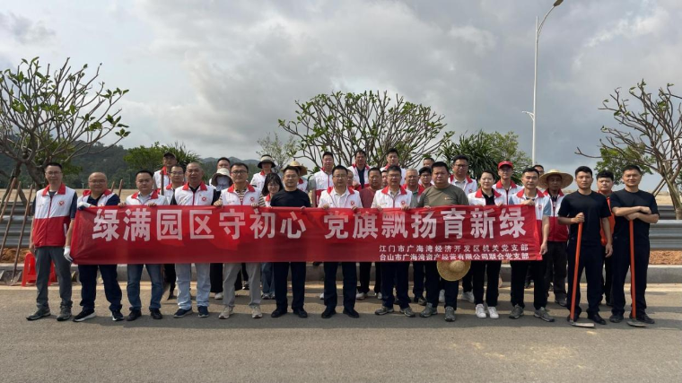 春风添新绿,植树正当时。为深入贯彻落实习近平生态文明思想,践行绿色发展理念,扎实推进绿美广东生态建设,4月13日,江门市广海湾经济开发区机关党支部、台山市广海湾资产经营有限公司联合党支部联合台山出入境边防检查站执勤一队党支部开展“绿满园区守初心,党旗飘扬育新绿”主题党日联建活动,以实际行动绘就绿美台山的生态新画卷。
