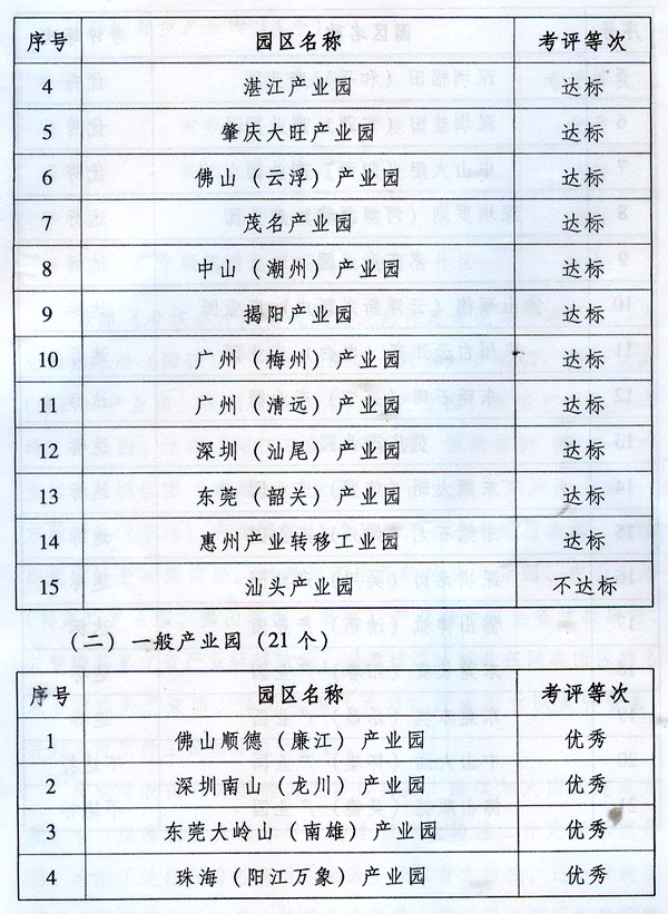 为贯彻落实《中共广东省委广东省人民政府关于进一步促进粤东西北地区振兴发展的决定》(粤发〔2013〕9号)、《中共广东省委办公厅广东省人民政府办公厅关于印发促进粤东西北地区产业园区扩能增效工作方案的通知》(粤办发〔2013〕22号),深入推进我省产业转移工作,促进省产业转移工业园(以下简称产业园)扩能增效,按照《广东省人民政府办公厅关于印发广东省产业园建设管理考核评价办法的通知》(粤办函〔2014〕23号,以下简称《考核办法》)的规定,省经济和信息化委会同省发展改革委、财政厅、人力资源社会保障厅、国土资源厅、环境保护厅、住房城乡建设厅、统计局等单位对2014年度省产业园建设管理工作进行考核评价。现将考评情况通报如下:
