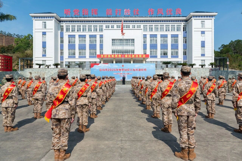 3月13日上午,台山市举行2026年春季征兵入伍欢送仪式,为即将踏上军旅征程、献身强军事业的106名台山青年壮行。台山市委书记、市人武部党委第一书记郑劲龙,市委副书记赵建涛出席仪式。市领导李华林主持仪式。