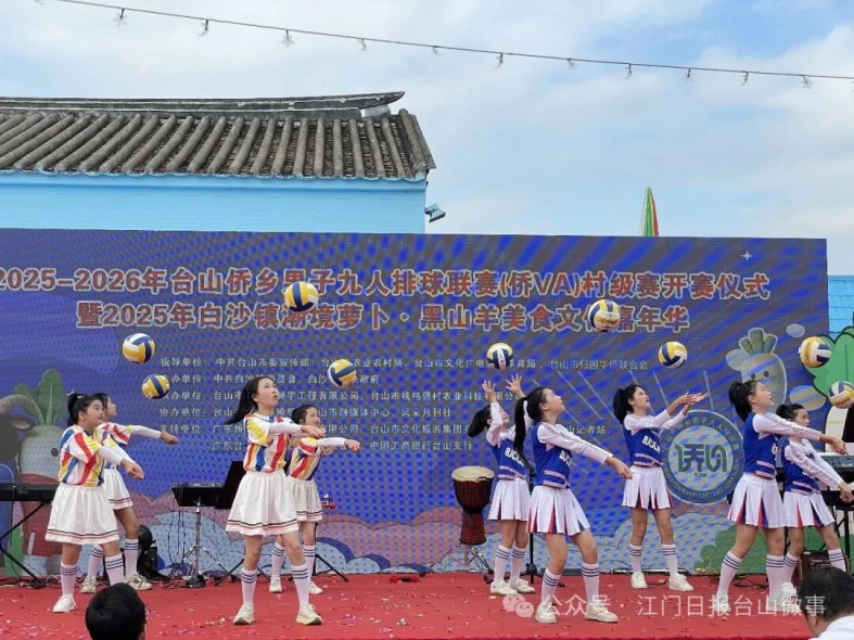 丰富多样的文艺表演同步精彩上演,为活动注入了浓郁的文艺活力。悠扬婉转的台山广东音乐萦绕耳畔,特色舞蹈轮番登场,将现场气氛一次次推向高潮。尤其是孩子们演绎的舞蹈《排球宝贝》,更是瞬间引爆全场。在她们灵动的舞姿间,“球不落地、永不放弃”的台山排球精神得以代代传承。