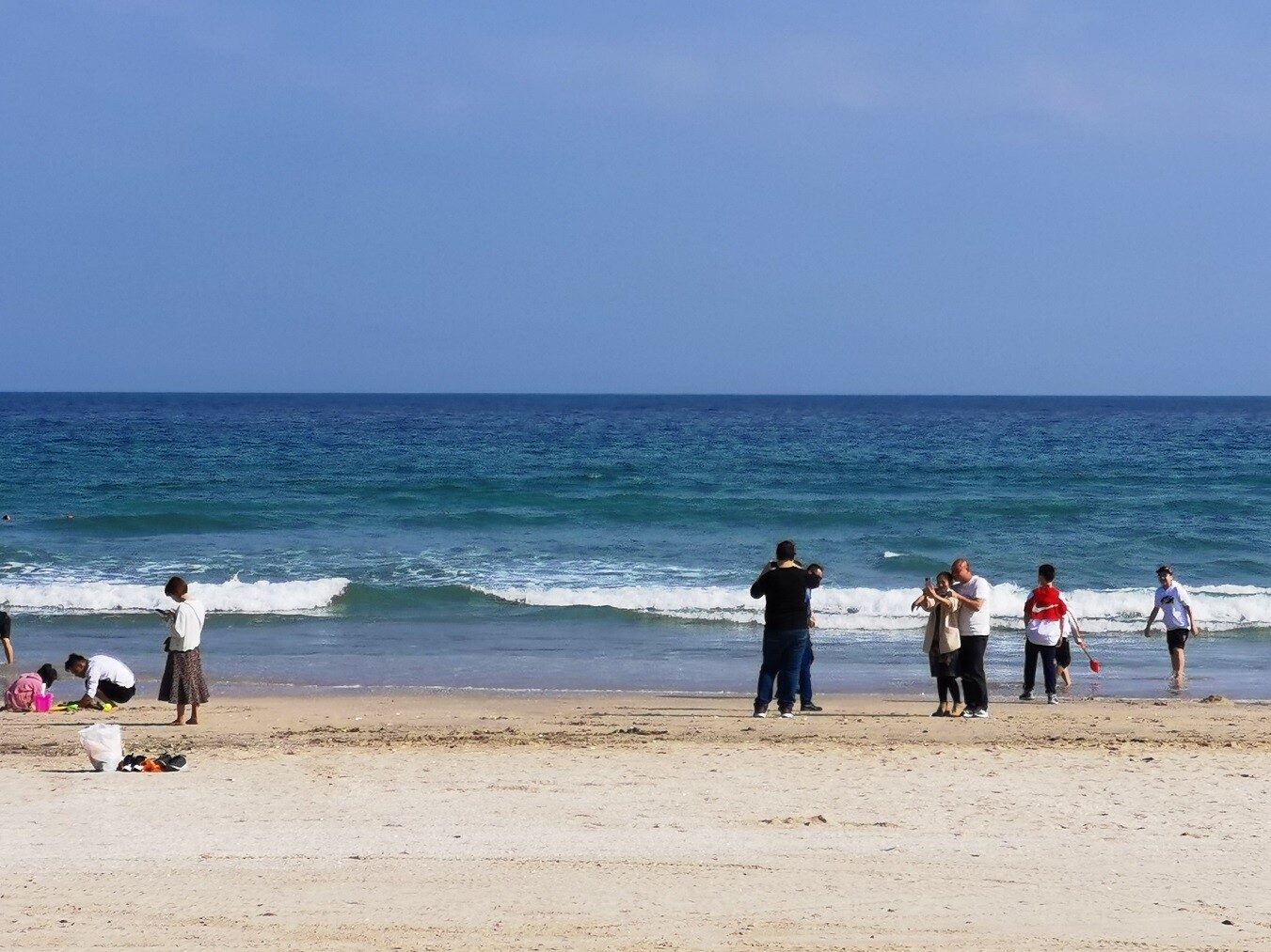 趁着天气晴好,大家纷纷出游,游客陆续进入景区。景区内,游人如织,车水马龙,有的游客在海边戏水,有的拿出手机拍照留念,整个景区充满了欢声笑语。