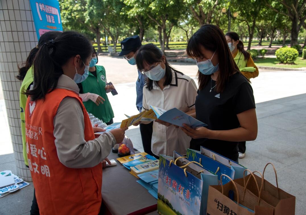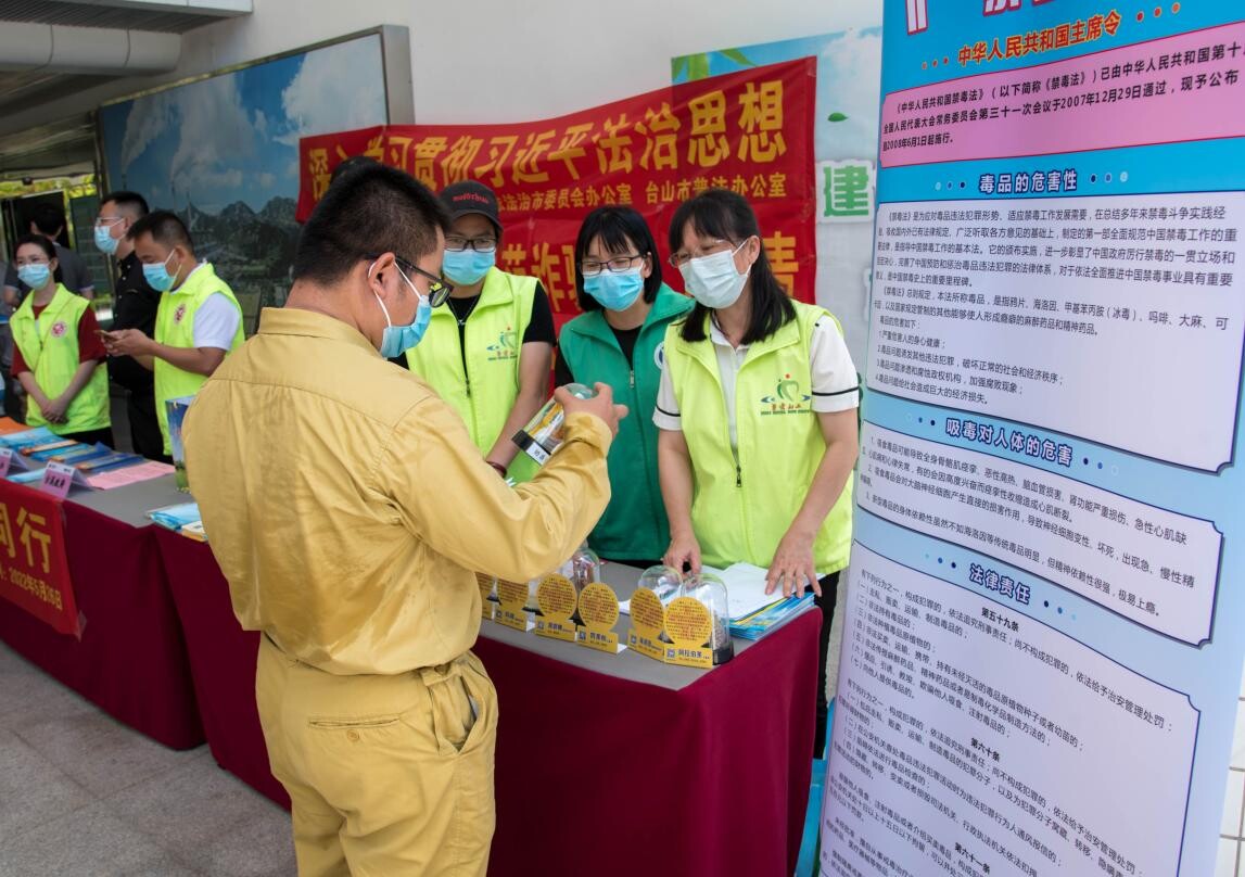 在禁毒宣传展台,志愿者利用仿真毒品等详细讲解《禁毒法》、毒品的种类、特征及危害,不少职工驻足认真聆听,主动索要宣传资料,询问相关法律和打击措施。